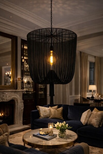 Deze stijlvolle lamp zorgt voor een luxe uitstraling in een grote ruimte. Verkrijgbaar in verschillende maten (zie foto's) en in de kleur: Zwart en Goud